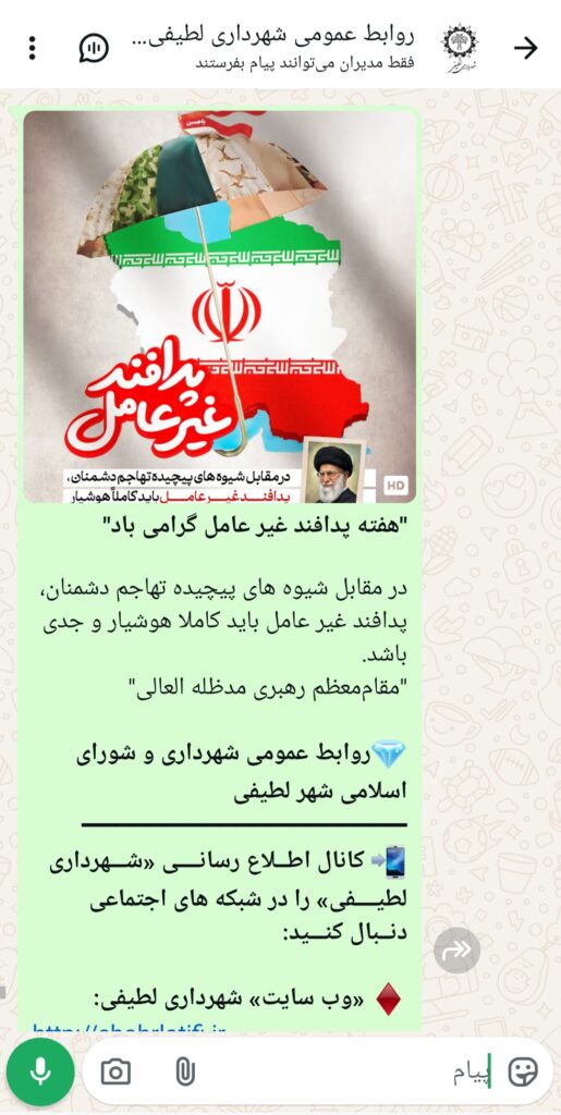 بهمنظور ترویج فرهنگ پدافند غیرعامل و افزایش سطح آگاهی نسل جوان و نوجوان، برنامههای آموزشی و فرهنگی متنوعی از سوی شهرداری لطیفی اجرا شد.در این راستا، با هدف اطلاعرسانی عمومی و گسترش آموزشهای پیشگیرانه، اقدامات متعددی از جمله فضاسازی محیطی و نصب بنرهای اطلاعرسانی در سطح شهر، انتشار پیامهای آموزشی در شبکههای اجتماعی شهرداری لطیفی، و برگزاری کلاسهای آموزشی مدیریت بحران با محوریت پدافند غیرعامل در مدارس دخترانه و پسرانه شهر انجام شد.اجرای این برنامهها با همکاری واحد فرهنگی و روابط عمومی شهرداری صورت گرفت و مورد استقبال دانشآموزان، کادر آموزشی مدارس و شهروندان قرار گرفت. هدف از این اقدامات، ارتقای آمادگی عمومی در مواجهه با شرایط بحرانی و نهادینهسازی اصول پدافند غیرعامل بهعنوان یک ضرورت ملی در میان اقشار مختلف جامعه است.