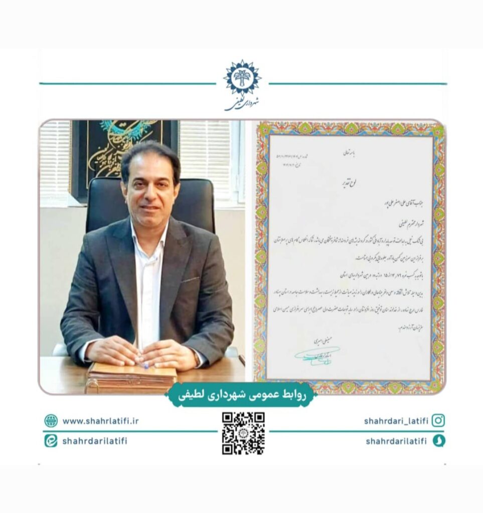 ✅تقدیر حسینعلی امیری استاندار فارس از علی اصغر علی پور شهردار لطیفی