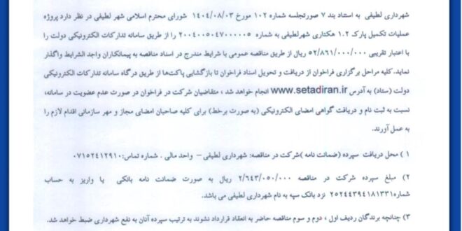 🔊 آگهی مناقصه؛ پروژه عملیات تکمیل پارک ۱.۲ هکتاری شهر لطیفی