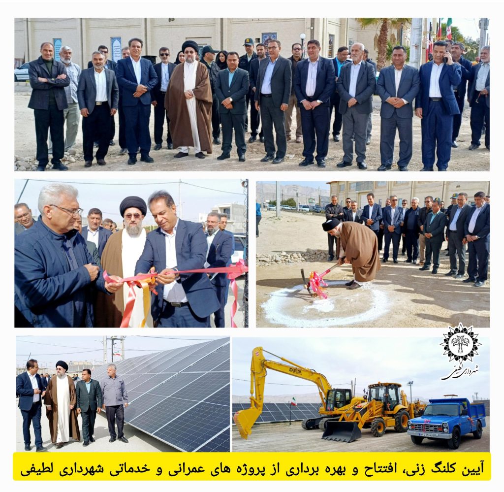 💎به گزارش روابط عمومی شهرداری لطیفی:*در دهمین روز از دهه‌ی مبارک فجر و به‌منظور پاسداشت ایام‌الله فجر انقلاب اسلامی، آیین افتتاح و بهره‌برداری از بخشی از پروژه‌های عمرانی و خدماتی شهرداری لطیفی با حضور حجت‌الاسلام والمسلمین دکتر موسوی خرم امام جمعه لارستان، عباسی فرماندار فرمانداری ویژه لارستان، دکتر عزیزی معاون هماهنگی امور اجرایی شهرستان های شرکت توزیع برق استان، دلاور معاون عمرانی فرماندار، عزیزی بخشدار مرکزی، علی‌پور شهردار لطیفی، اعضای شورای اسلامی شهر، جمعی از روسای ادارات و جمعی از مردم و معتمدین همراه بود، چندین طرح عمرانی و خدماتی مورد بهره‌برداری قرار گرفت.💎علی‌پور، شهردار لطیفی، در سخنان خود ضمن تبریک فرارسیدن دهه فجر و گرامیداشت یاد و خاطره امام راحل (ره) و شهدای انقلاب اسلامی گفت:«شهرداری لطیفی تلاش کرده است تا در مسیر توسعه متوازن، شهری زیبا، پویا و کارآمد برای شهروندان رقم بزند. افتتاح این پروژه‌ها نمادی از خدمت و تعهد مدیریت شهری به رفاه مردم است.»وی در ادامه افزود: «بخشی از پروژه‌های افتتاح‌شده با اعتباری بالغ بر ۵۱۰ میلیارد ریال شامل: بهره برداری از پروژه نیروگاه خورشیدی ۲۰۰ کیلوواتی/کلنگ زنی فاز اول رینگ جنوبی/ پروژه کانیوا گذاری، زیرسازی و آسفالت معابر شهری/ خرید، نصب و بهره برداری از دوربین های پایش تصویری/ تجهیز ناوگان‌موتوری شهرداری به چهار دستگاه عمرانی؛(یک دستگاه بیل زنجیری مدل sc220.9، یک دستگاه بیل بکهو، یک دستگاه کامیونت کمپرسی، یک دستگاه پراید وانت، که همه این طرح‌ها با هدف افزایش کیفیت خدمات رسانی به شهروندان اجرا شده‌ است.)💎 در این مراسم مسئولان حاضر ضمن بازدید میدانی از پروژه‌های مورد افتتاح، از اهتمام مدیریت شهری و کارکنان خدوم شهرداری در اجرای طرح‌های زیربنایی و خدماتی قدردانی کردند.*💎روابط عمومی شهرداری و شورای اسلامی شهر لطیفی*